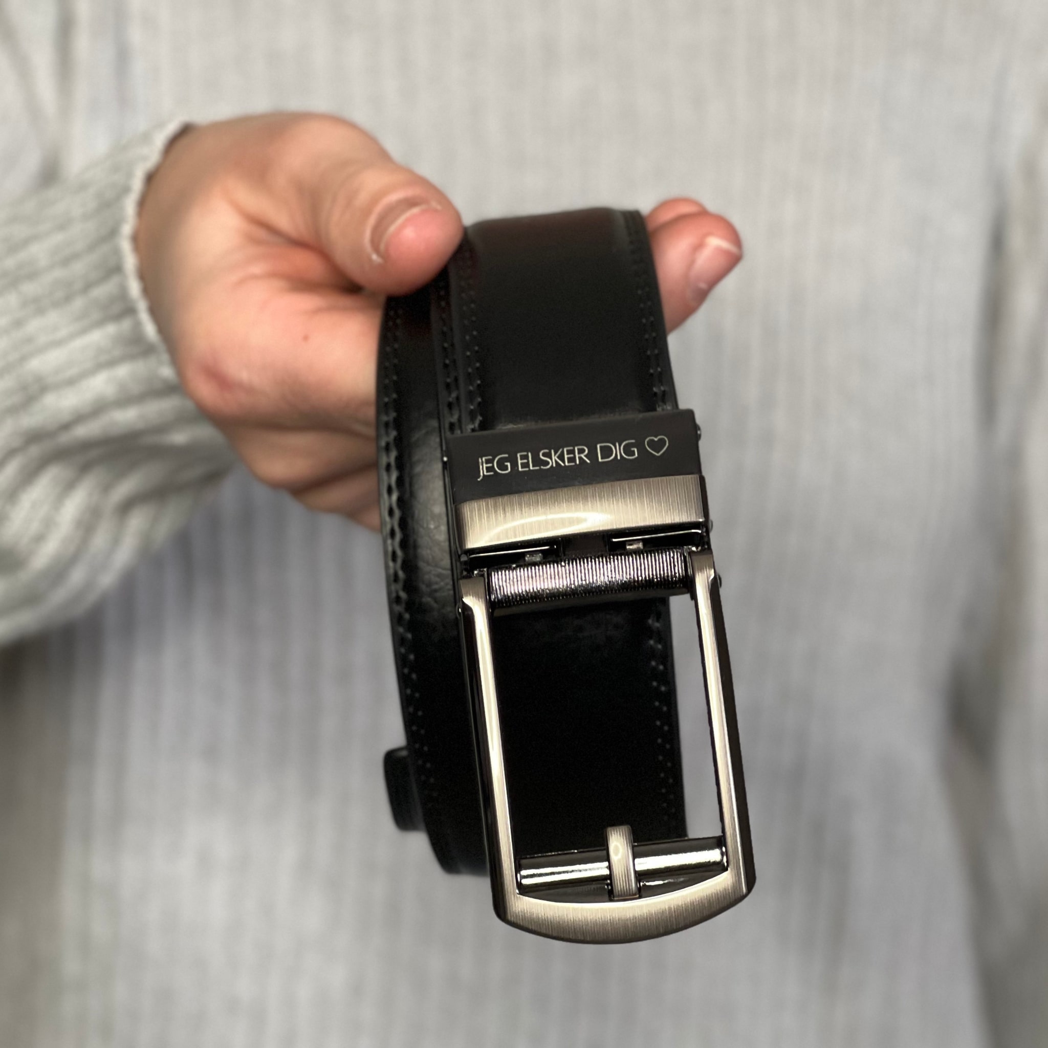 Det, der især gør bæltet interessant som gave til far, er muligheden for indgravering. Indgraveringen placeres diskret, så den ikke ændrer bæltets udtryk udadtil.